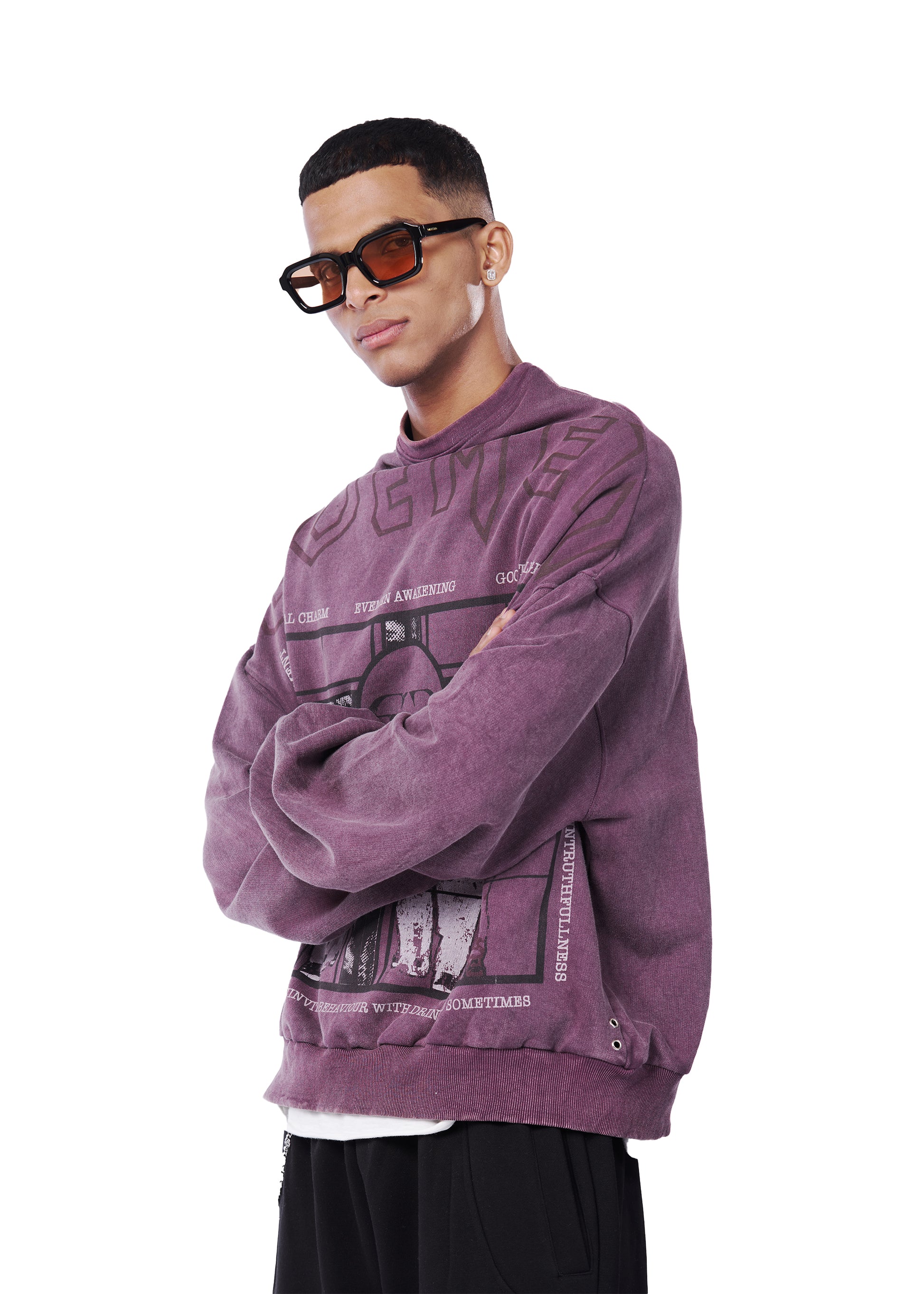 Introducing the Purple Stone-Wash Cowl Neck Tee, crafted from heavyweight 350 GSM cotton terry. It features a relaxed cowl neckline resembling a soft, loose collar, along with drop shoulders that create an oversized silhouette. The tee is finished with ribbed cuffs and a ribbed hem, and showcases a flat screen print inspired by Bully, paired with Evemen’s new logo placed at the centre.Designed in a straight, boxy fit, each piece undergoes an individual wash process that takes over 190 minutes to complete ensuring no two garments are exactly alike.